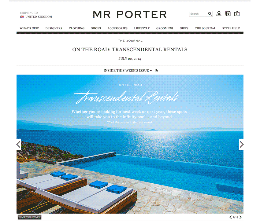 For the leading men’s fashion e-commerce brand MrPorter.com, I digitally designed editorial features on The Journal with their in-house team.